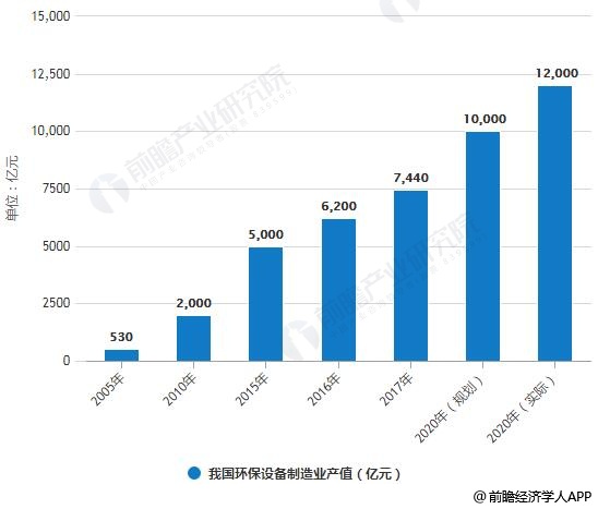 2017年10月,工業(yè)和信息化部發(fā)布《關(guān)于加快發(fā)展環(huán)境保護(hù)裝備制造業(yè)的指導(dǎo)意見》,提出到2020年,水處理設(shè)備環(huán)境保護(hù)裝備制造業(yè)產(chǎn)值應(yīng)達(dá)到1萬億元。根據(jù)我國環(huán)保裝備產(chǎn)業(yè)的發(fā)展現(xiàn)狀,預(yù)計(jì)2019年達(dá)到產(chǎn)業(yè)萬億元目標(biāo),2020年超過1.2萬億元。行業(yè)發(fā)展速度超出規(guī)劃預(yù)期。