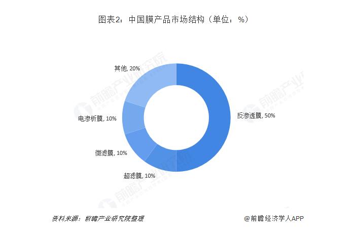 在特定產(chǎn)品方面,,總銷售額的50%以上的市場被反滲透膜(RO)和納濾膜(NF)、超濾膜(超濾),微濾膜(MF)和電滲析膜分別占10%,剩下的20%是被氣體分離膜、無機(jī)陶瓷膜、滲透膜等類型。
