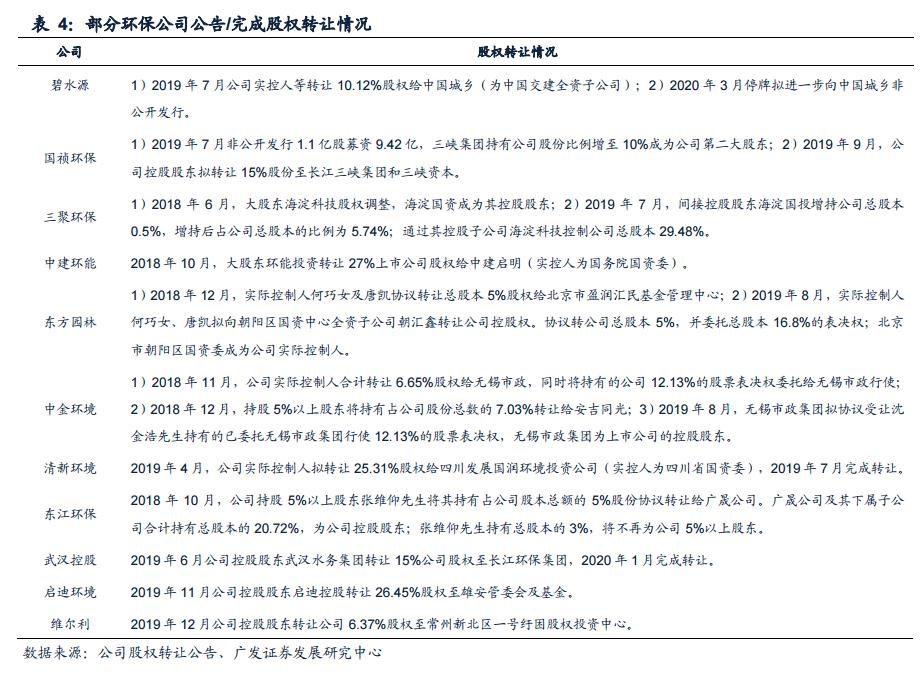關(guān)注國企\央企入駐的“后效應(yīng)”。碧水源公告股東擬將 13.4%股份表決權(quán)轉(zhuǎn)讓至中國城鄉(xiāng),同時公司擬向中國城鄉(xiāng)非公開發(fā)行股份,上述事項可能涉及公司控股權(quán)變更。2018 年“融資危機”以來,10 余家環(huán)保公司公告引入國企\央企控股或作為戰(zhàn)略投資者。我們預(yù)計國資入股的“后效應(yīng)”逐步體現(xiàn):(1)信用、融資改善,中票、短融等發(fā)行有望重啟,多元化融資方式將打通;(2)訂單獲取能力提升、政府溝通能力提升;(3)同類型資產(chǎn)/業(yè)務(wù)的整合預(yù)期。