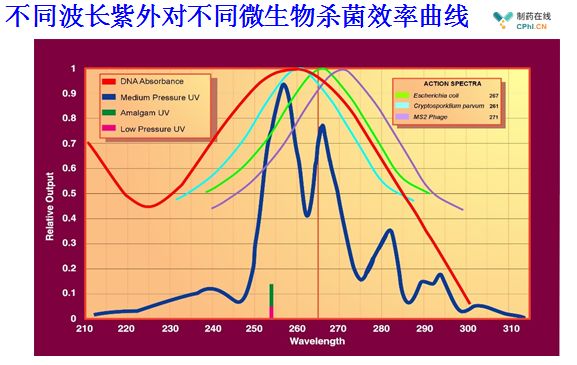 微生物結(jié)構(gòu),微生物的體內(nèi)都含有RNA(核糖核酸)和DNA(脫氧核糖核酸),而RNA和DNA的共同特點是具有由磷酸二酯按照嘌呤與嘧啶堿基配對的原則相連的多核酸鏈,它對紫外光具有強(qiáng)烈的吸收作用。紫外線殺菌的原理一般認(rèn)為它與破壞細(xì)胞內(nèi)代謝、遺傳、變異等現(xiàn)象起著決定性作用的核酸相關(guān),波長在200~300nm之間的紫外線有殺滅作用,其中以254nm波長的紫外線滅菌效果最好。這是因為細(xì)胞中的DNA(脫氧核糖核酸)核蛋白的紫外吸收峰值正好在254~257nm之間⑶。
